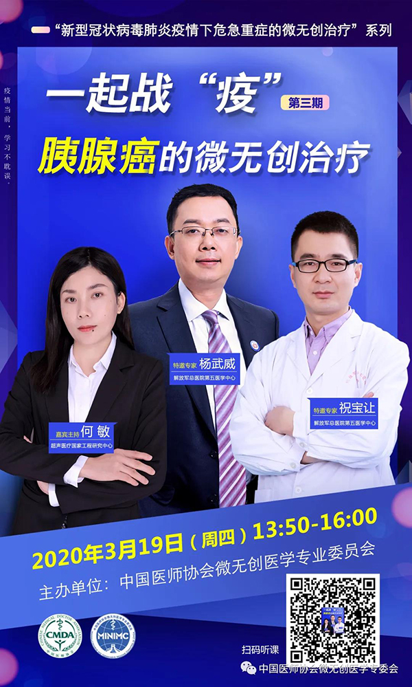 新冠疫情之下,中国医师协会微无创医学专业委员会特邀内业专家,采用线上学习交流的方式,在内容上突出“实”,在形式上打造“新”,助推微无创技术的临床应用,一起打赢这场防疫攻坚战!