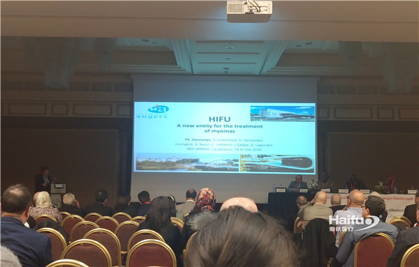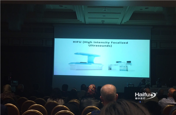 法国妇产科盆腔手术协会副主席Philippe Descamps教授受邀在会上发表了题为“高强度聚焦超声:治疗子宫肌瘤的新方式”( HIFU: A new entity for the treatment of myomas)的专题演讲,介绍了中国海扶医疗研制的超声引导的聚焦超声治疗技术、原理、妇产科临床应用现状及治疗的安全性、有效性,短短20分钟的演讲激起了在场听众的广泛兴趣,提问环节逾40分钟。
