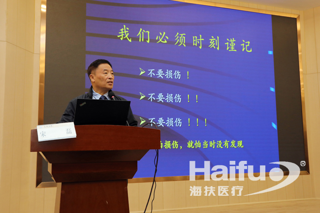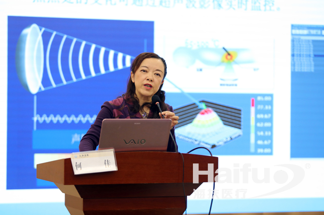 会上,超声医疗国家工程研究中心主任、海扶刀®第一发明人王智彪教授做了题为《治疗——让病人受伤害更小!》的报告