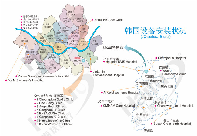 截止目前,韩国有21家医院引起了海扶刀®聚集超声肿瘤治疗系统,其中首尔市有14家,首尔以外有7家。