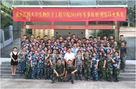 2018年8月18-29日,重医生物医学工程学院组织2015级五年制生物医学工程专业(医疗器械方向)、2014级七年制临床医学专业(微无创医学方向)73名学生,在超声医疗国家工程研究中心进行了为期12天的封闭式军事综合素质拓展训练。