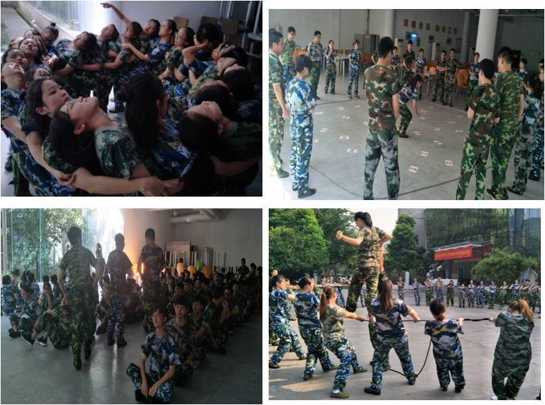 在12天的军事综合素质拓展训练中,学生们创作了自己团队的名字、队训、队雕、队徽以及队歌,围绕着团队文化紧紧的凝聚在一起,满怀激情地投入到老师和教官们精心准备的队列训练、拓展项目、电影、讲座等一系列拓展活动中。