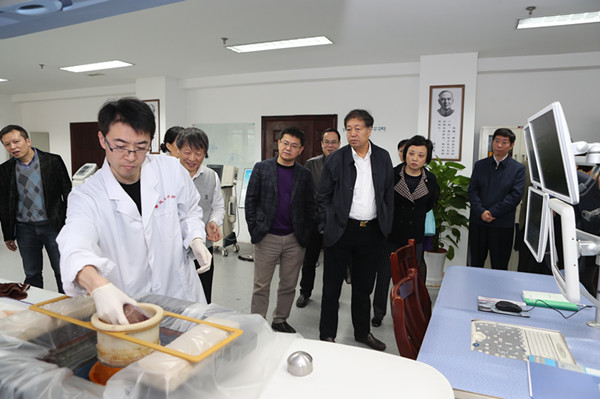 上午,郭志伟一行前往超声医疗国家工程研究中心调研。重点观看了国家重大科研仪器专项“球形聚焦集声系统的研究”成果演示,他对项目取得的成果给予了充分肯定、高度赞赏,详细询问了科研团队建设、下一步研发工作开展等情况,并对科研团队在研发方向、科研方法等方面提出了意见和建议。随后,观看了聚焦超声治疗原理演示实验,以及超声消融临床应用研究的最新进展,郭志伟鼓励科研团队要加快市场拓展、造福更多的患者。