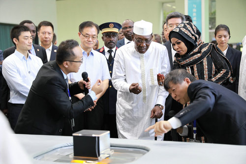 重庆海扶医疗董事长王智彪现场向代比总统演示了从体外对体内做手术,不开刀、不流血、无创伤、保卫器官的聚焦超声治疗技术。非洲育龄期女性的子宫肌瘤、子宫腺肌病发病率偏高,用中国重庆原创的海扶刀®治疗,可减轻患者损伤,保护子宫。