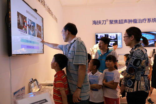 海扶医疗受国家自然科学基金委推荐,参加5月19日至26日在北京举行的全国科普周活动。用不开刀、不流血,无创伤的海扶刀®为观众展现了如武侠小说中神奇的”隔山打牛“般的手术治疗,征服了在场的观众,才有了文章开头的对话。