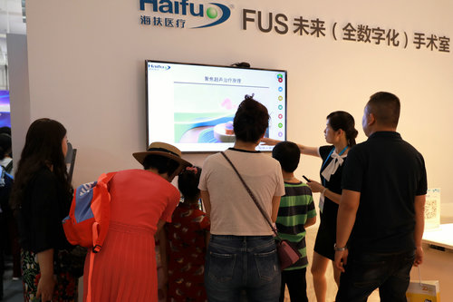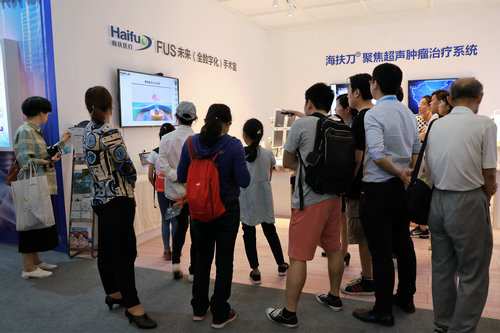 在展览现场,海扶医疗展示了近代手术治疗发展的两次飞跃:从传统创伤较大的开腹手术到创伤较小的腔镜手术,再到从体外向体内治疗,身体上没有任何创伤的聚焦超声治疗。海扶刀®的出现让患者在手术治疗时不再流血,不再切除器官,这是医学文明的进步。让病人受伤害更小,始终是医学文明发展的方向,更是我们孜孜不倦的追求。