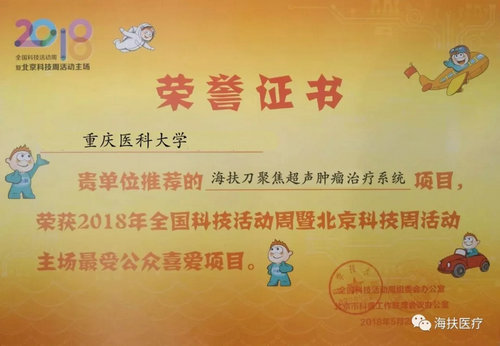 在科普周最后一天下午的颁奖典礼上,海扶医疗荣获了科普周“最受公众喜爱”项目奖项。在此次科普周参展的460个项目中,一共有98个项目获奖。