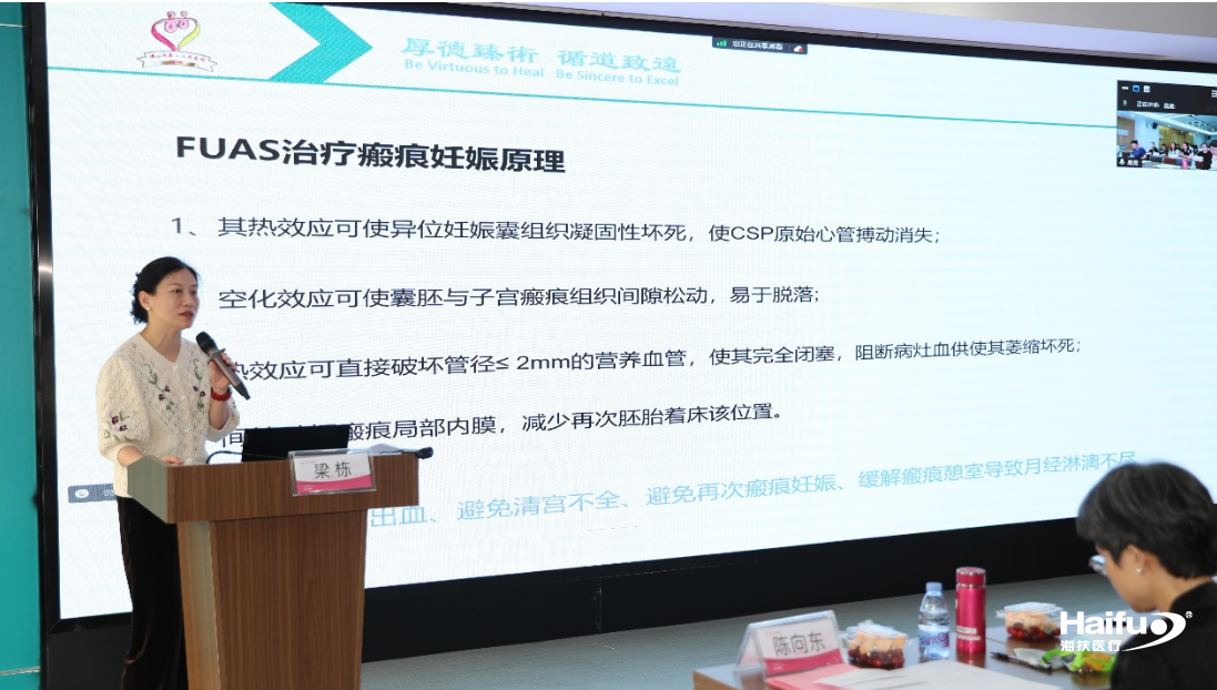 佛山市第一人民医院梁栋作《高强度聚焦超声在瘢痕妊娠治疗中的应用》的讲座。