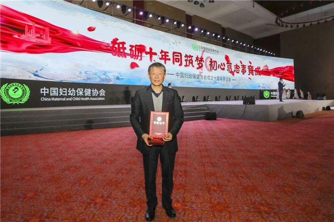 会上,中国妇幼保健协会为海扶医疗董事长、海扶刀®第一发明人王智彪教授颁发“妇幼健康产业合作发展奖”,肯定其为中国妇幼健康事业做出的巨大贡献。