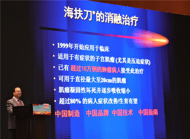 中国工程院郎景和院士讲到,医学是仁学,是人学,以人为本,具备科学、社会、人文三种属性。医疗对象是有思想感情,意识、意愿,有家庭和社会背景的人。因此我们要关爱妇女,保护妇女的子宫。子宫是女性生殖器官的轴心、生殖的圣地、孕育的摇篮、女性的尊严。而子宫肌瘤是可能导致女性切除子宫的一种常见妇科肿瘤,其是最为常见、问题最多、治疗方案最多、治疗最难抉择的,是最体现规范化、个体化、微创化、人性化“四化”的肿瘤,术式或途径有经腹、经阴道、经腹腔镜、经宫腔镜,各种方式都有其适应症、非适应症和禁忌症,不要刻意或固守一种手术方式。海扶刀®治疗也是常用于子宫肌瘤的一种手术方式,于1999年开始应用于临床,适用于有症状的子宫肌瘤(尤其是压迫症状),可治疗直径最大至20cm的肌瘤,治疗后肌瘤凝固性坏死并逐渐吸收缩小,超过80%的病人症状改善、生育有望。在妇科良性疾病中,其还可用于子宫腺肌病、胎盘植入、切口妊娠、宫角妊娠、妊娠残留物、功能性子宫出血的治疗。海扶刀®设备是中国制造、中国品牌,拥有中国的指南,截至目前已有超过12万例的肿瘤病人接受此治疗。
