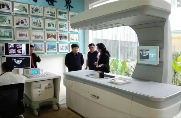 重庆医科大学生物医学工程学院白晋教授向董志峰副主任、张兆丰处长汇报了中国原创超声治疗技术的发展和临床应用情况,两位领导在海扶医院观摩了子宫肌瘤的聚焦超声(FUS)治疗,并重点视察了已于今年3月通过验收的重大科研仪器设备研制专项“球形聚焦集声系统的研究”项目,了解项目最新科研进展和成果。