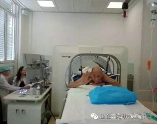 患者是来自澳大利亚的50岁左右的男性,患有转移性肝癌,在临床上已无法进行传统手术治疗。在接受HIFU治疗时,只用时短短50分钟,肿瘤病灶就被完全“消融”,治疗时,患者意识清醒,并与医生进行术中交流。他十分惊奇这项不开刀、不流血的先进技术,当看到治疗现场的中国医生和工程师,他更加惊叹,没想到在世界一流的大学医院,使用的一流的治疗技术竟源自中国重庆。他用手机记录了这次重拾尊严的治疗全过程。