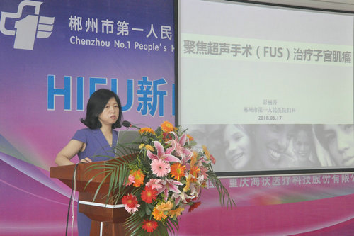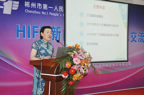 来自中南大学湘雅三医院妇产科的薛敏教授做了《HIFU治疗子宫腺肌病》的讲座。薛敏教授首先祝贺郴州市第一人民医院HIFU微无创治疗中心的成立,并指出医院科室学科要有所发展,就要不断学习和引入新的技术,此次医院妇科引进HIFU微无创治疗这种不开刀、不流血、保留器官的治疗技术,相信能为郴州的广大女性患者带来更多的福祉,并进一步推动郴州微无创医学的发展。