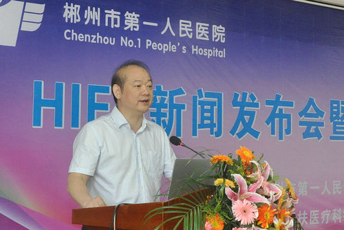 郴州市第一人民医院黄仁彬院长致辞:为患者提供安全、有效、优质的医疗服务一直是医院的办院宗旨。郴州市人民医院妇科是省级重点学科,学科水平在一直在地市级医院排名前列,医院妇科率先在湘南地区开展HIFU微无创治疗对推动郴州微无创医学的整体发展,提高微无创技术的临床应用,具有重要意义。有利推动了以病人为中心的多学科联合诊疗模式的发展。HIFU微无创治疗科研合作基地和海扶治疗中心的建立,也标志着医院微无创治疗的发展又向前迈进了一步,提升了医院的综合实力。